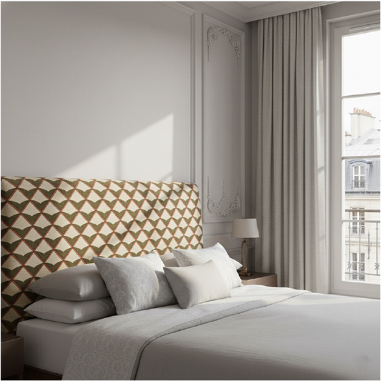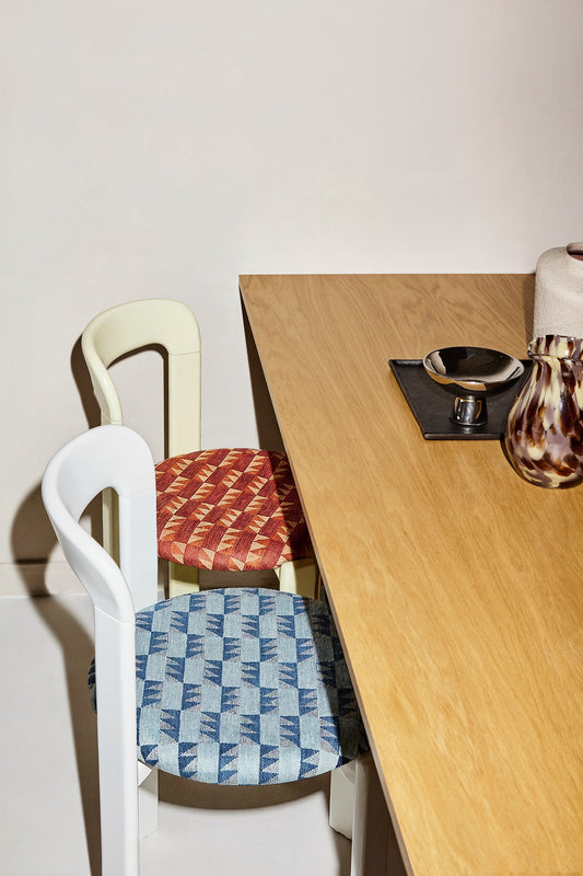 Woven in homage to the understated elegance of 18th-century Dutch wool textiles, this collection reimagines the geometric precision of historic designs. The patterns are drawn from archival wool prints once produced in the Brabant region. Warm, earthy tones recall the landscapes and brick villages of the southern Netherlands: moss, laurel and faded rust. The geometric motifs are measured, symmetrical and tactile. Woven in fine natural yarns, the collection carries forward a lineage of Dutch craftsmanship.