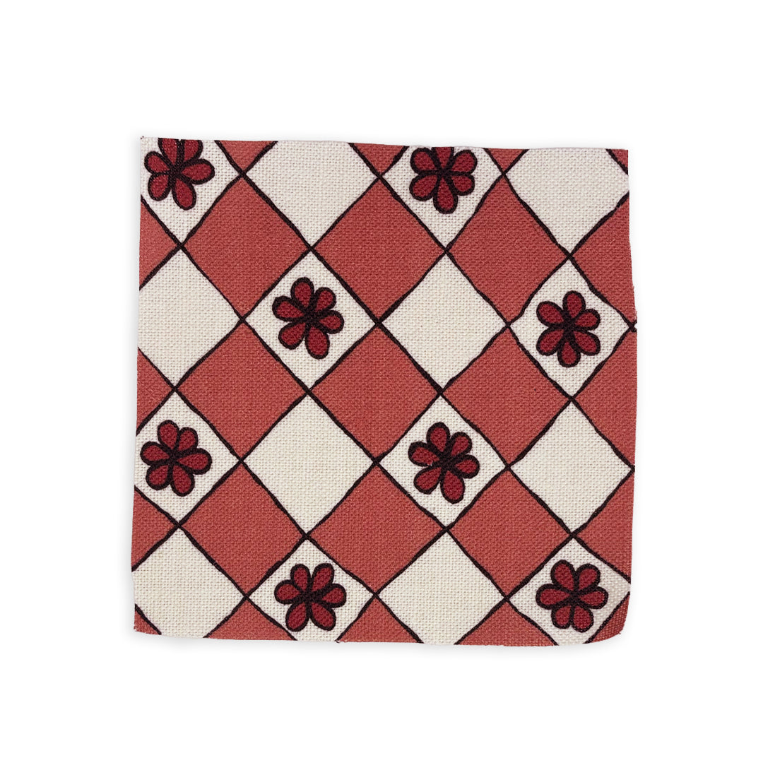 This delicate floral chequerboard print draws inspiration from the hand-painted flowers by Vanessa Bell on one of the headboards in Charleston House, blending artistry and elegance in a subtle design.