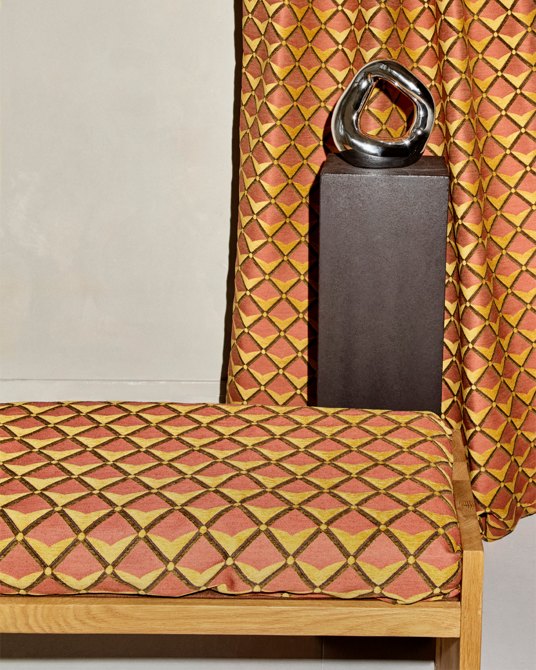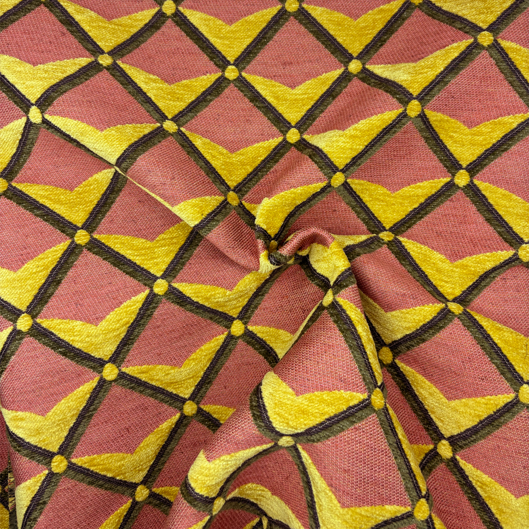 In the measured rhythm of historic Dutch craftsmanship, our Verster design reimagines the trellis motif as both structure and ornament. Jacquard woven in England, its balanced geometry and earthy tones recall hand-laid brick and woven field lines. This design is an ode to warmth and quiet refinement.