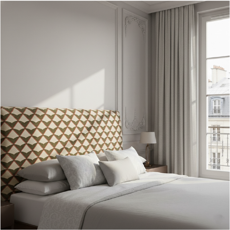 In the measured rhythm of historic Dutch craftsmanship, our Verster design reimagines the trellis motif as both structure and ornament. Jacquard woven in England, its balanced geometry and earthy tones recall hand-laid brick and woven field lines. This design is an ode to warmth and quiet refinement.