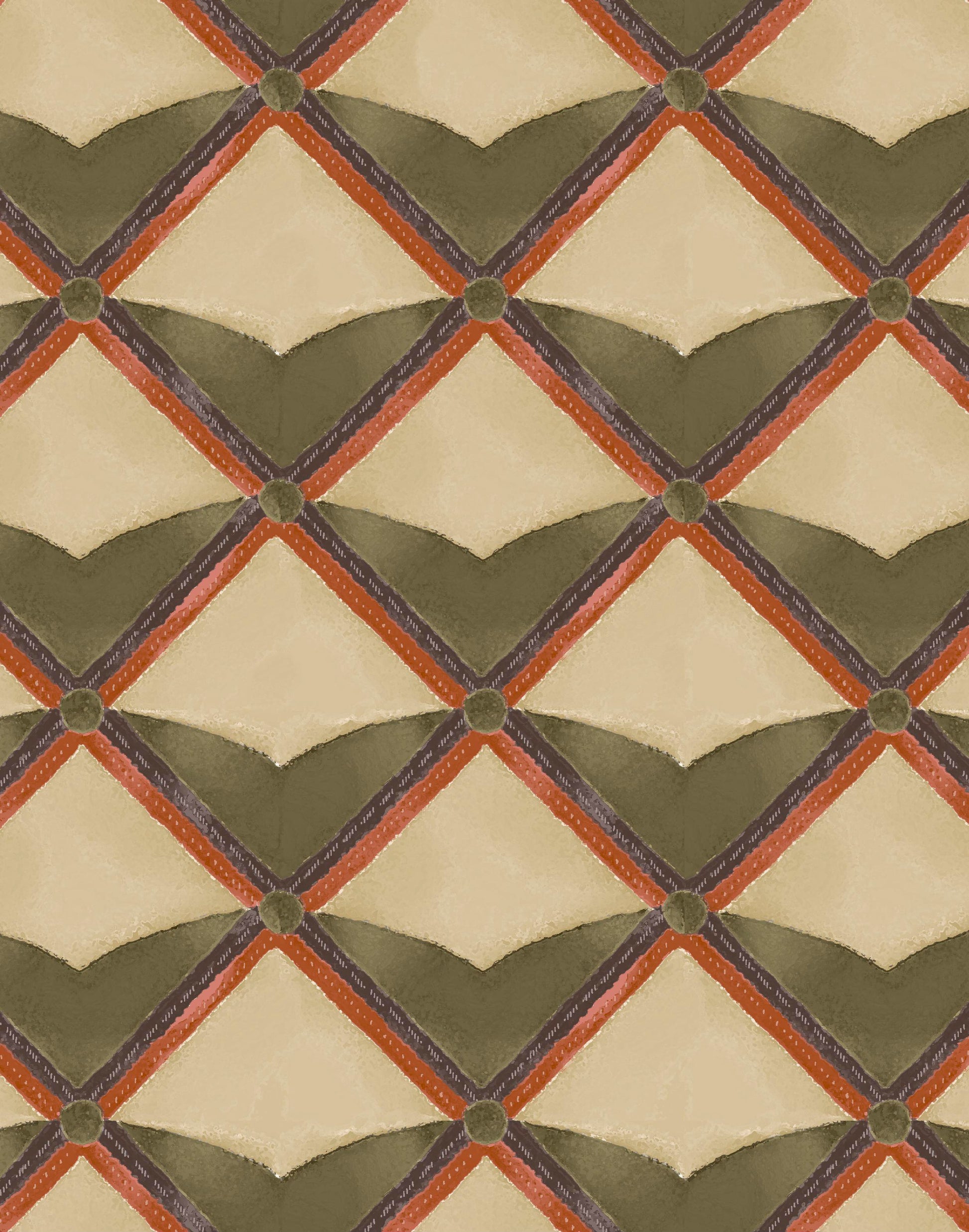 In the measured rhythm of historic Dutch craftsmanship, our Verster wallpaper reimagines the trellis motif as both structure and ornament. Printed in England, its balanced geometry and earthy tones recall hand-laid brick and woven field lines. This design is an ode to warmth and quiet refinement.